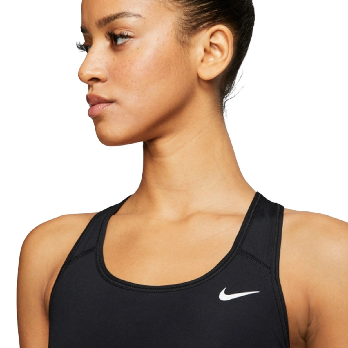 Stanik sportowy Nike Swoosh bez wyściółki łączy kompresyjną tkaninę z technologią pochłaniającą pot, aby zapewnić suchość i zapewnić maksymalne zapięcie podczas aktywności o średniej intensywności.