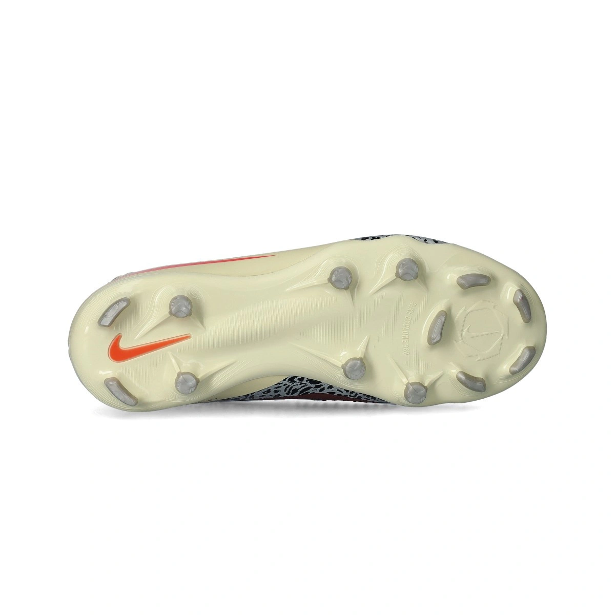 Wzór trakcji Nike Cyclone 360 pomaga wykonywać szybkie ruchy (zwiększa zwinność podczas cięć) i zapewnia bezpieczeństwo (pomaga zmniejszyć rotacyjną trakcję), dzięki czemu możesz ciąć z prędkością, czując się całkowicie pewnie, gdy intensywność gry wzrasta.