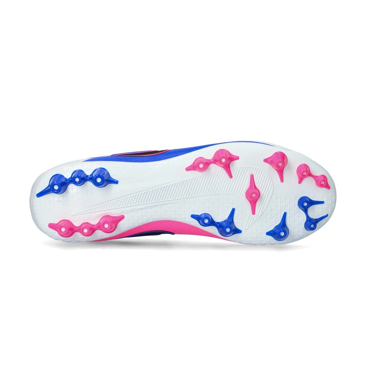 Wypustki na podeszwie są puste w środku, co zapewnia lepszą przyczepność na twardszych, syntetycznych nawierzchniach. Dodatkowe korki z przodu i na pięcie pomagają pewnie zmieniać tempo gry.