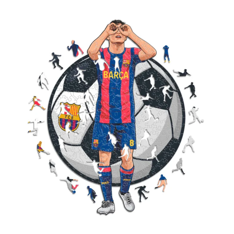 Odkryj zagadkę tak kultową jak gracz, którego reprezentuje! 150-częściowy „Pedri Puzzle Madera” to prawdziwa perełka dla fanów piłki nożnej i entuzjastów puzzli. Ta układanka, stworzona pod prestiżową marką ICONIC PUZZLES, oddaje esencję młodego geniusza FC Barcelona dzięki starannie wykonanemu projektowi, który odzwierciedla jego pasję i talent na boisku.