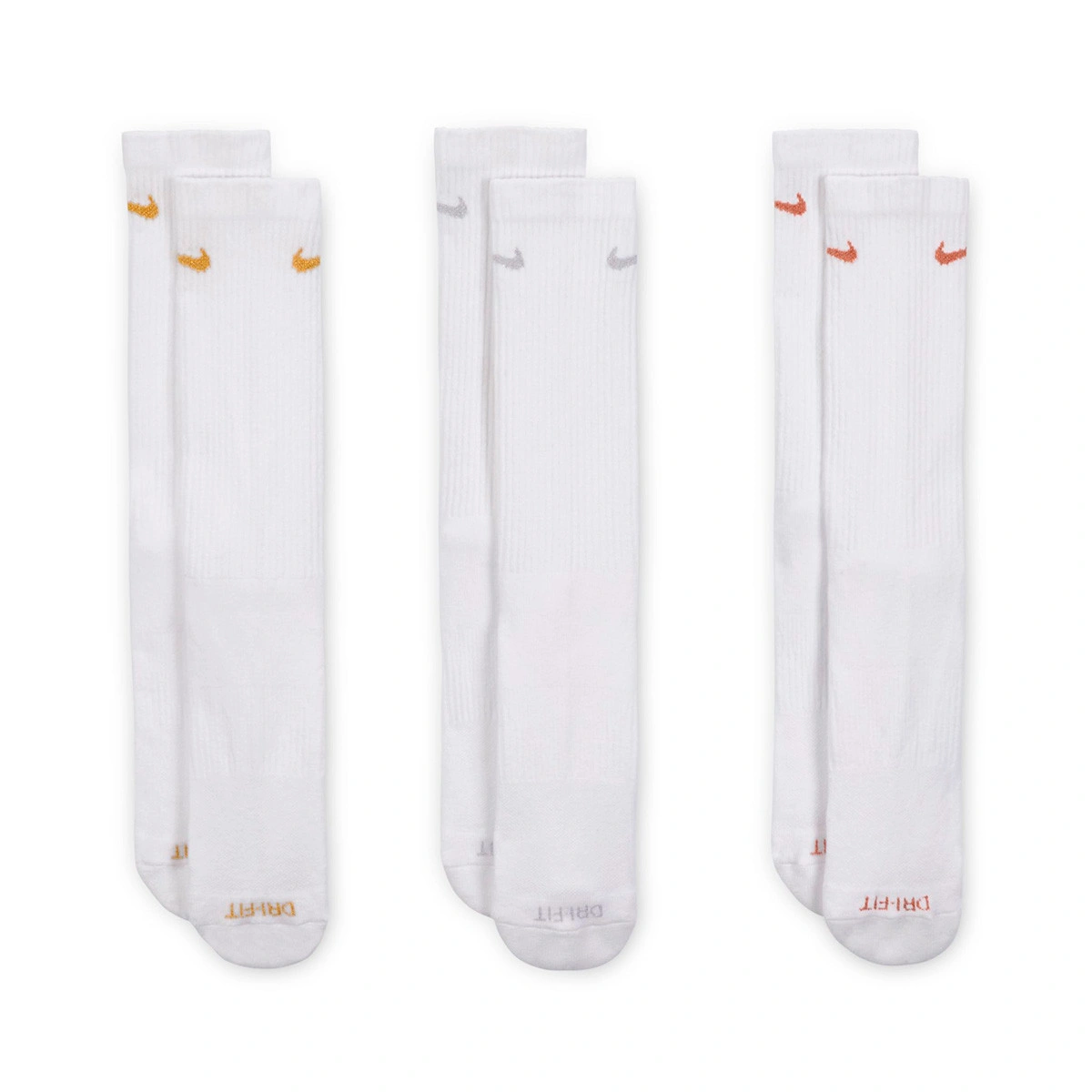 Skarpety treningowe Nike Everyday Plus Cushioned zapewniają komfort podczas treningu dzięki dodatkowej amortyzacji pod piętą i przednią częścią stopy oraz wygodnemu, wspierającemu pasowi wspierającemu łuk stopy. Technologia odprowadzania wilgoci i oddychalność cholewki utrzymują stopy w suchości i chłodzie, dzięki czemu możesz pokonywać długie dystanse.